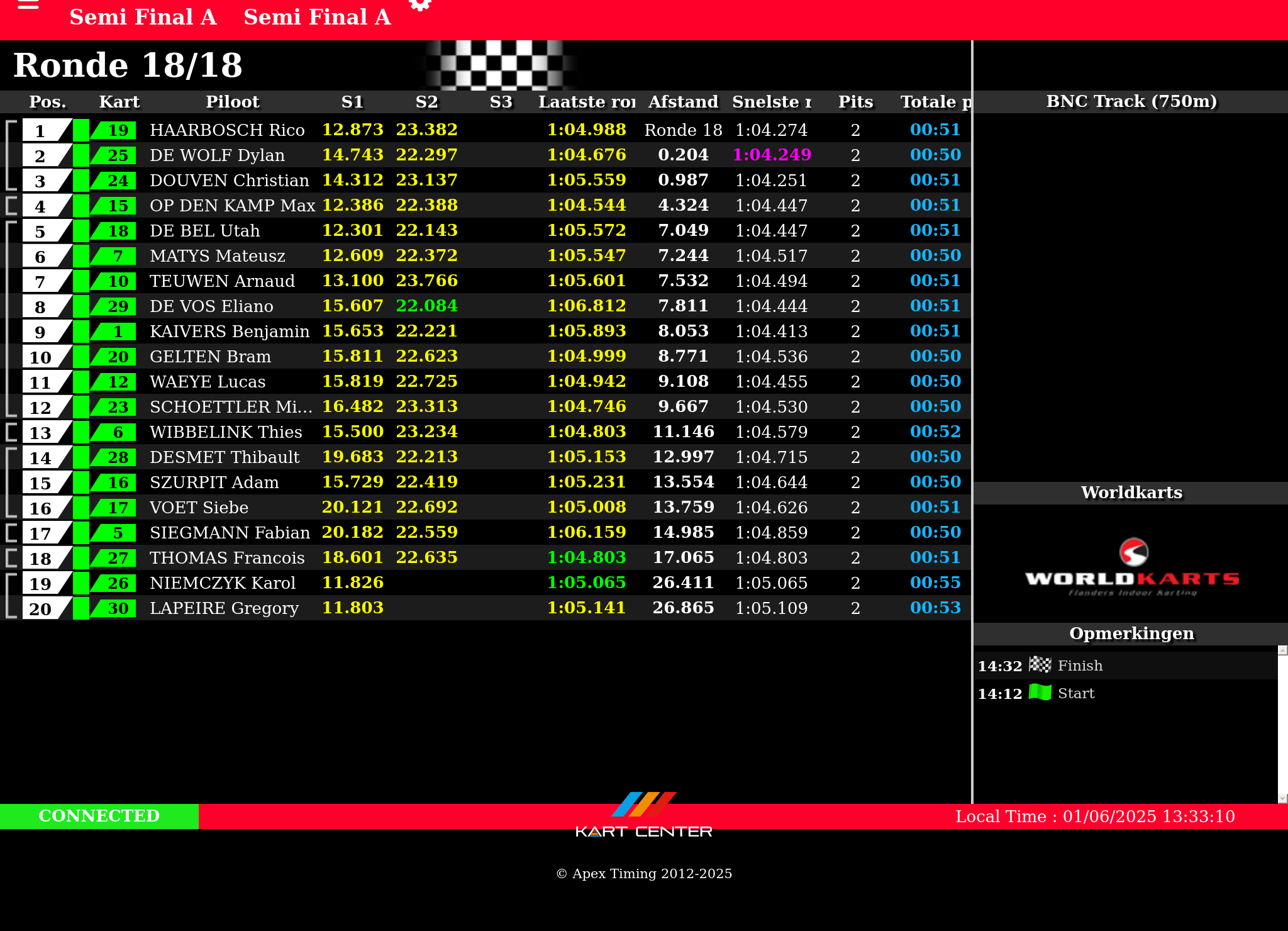Live timing timelapse